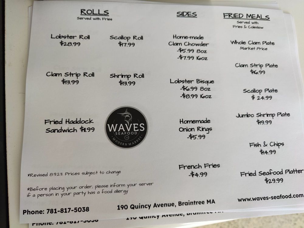 Welcome to Waves Seafood, a hidden gem located at 190 Quincy Ave, Braintree, MA. Specializing in fresh, quality seafood, this eatery boasts a menu that features delectable fried meals, including the signature Fried Seafood Platter and Whole Belly Clams, served with fries and coleslaw. Indulge in their mouthwatering Lobster Roll, perfectly presented on a buttered brioche roll, making it a must-try.